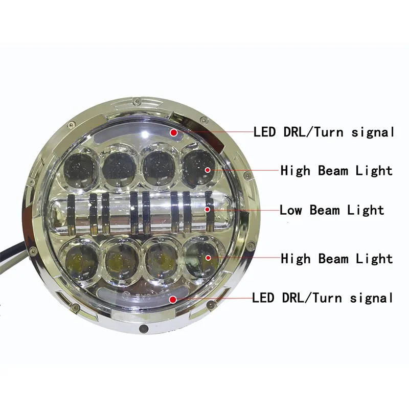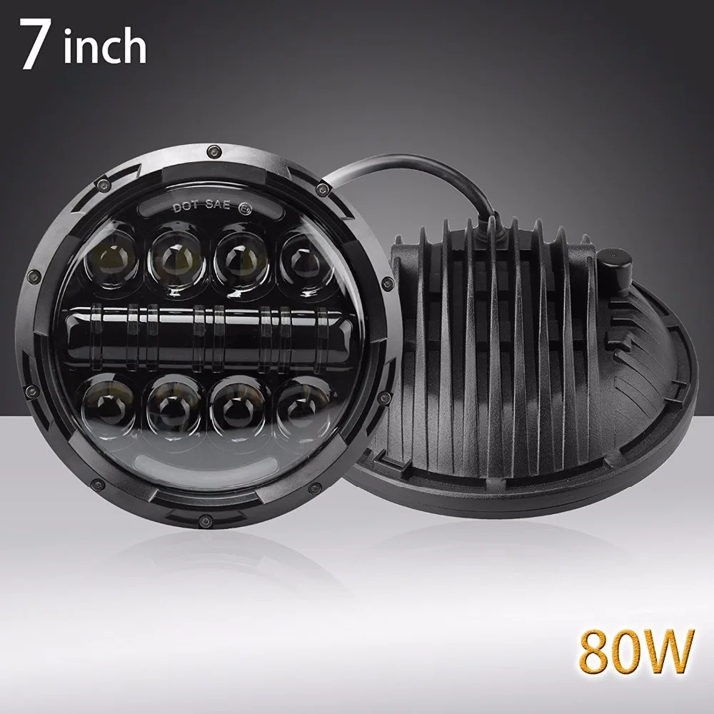 .image for 7" Round Hi/Low LED Headlight DRL Headlamp for Jeep Wrangler JK TJ CJ Patrol GR Y60 Hummer H2 Lada