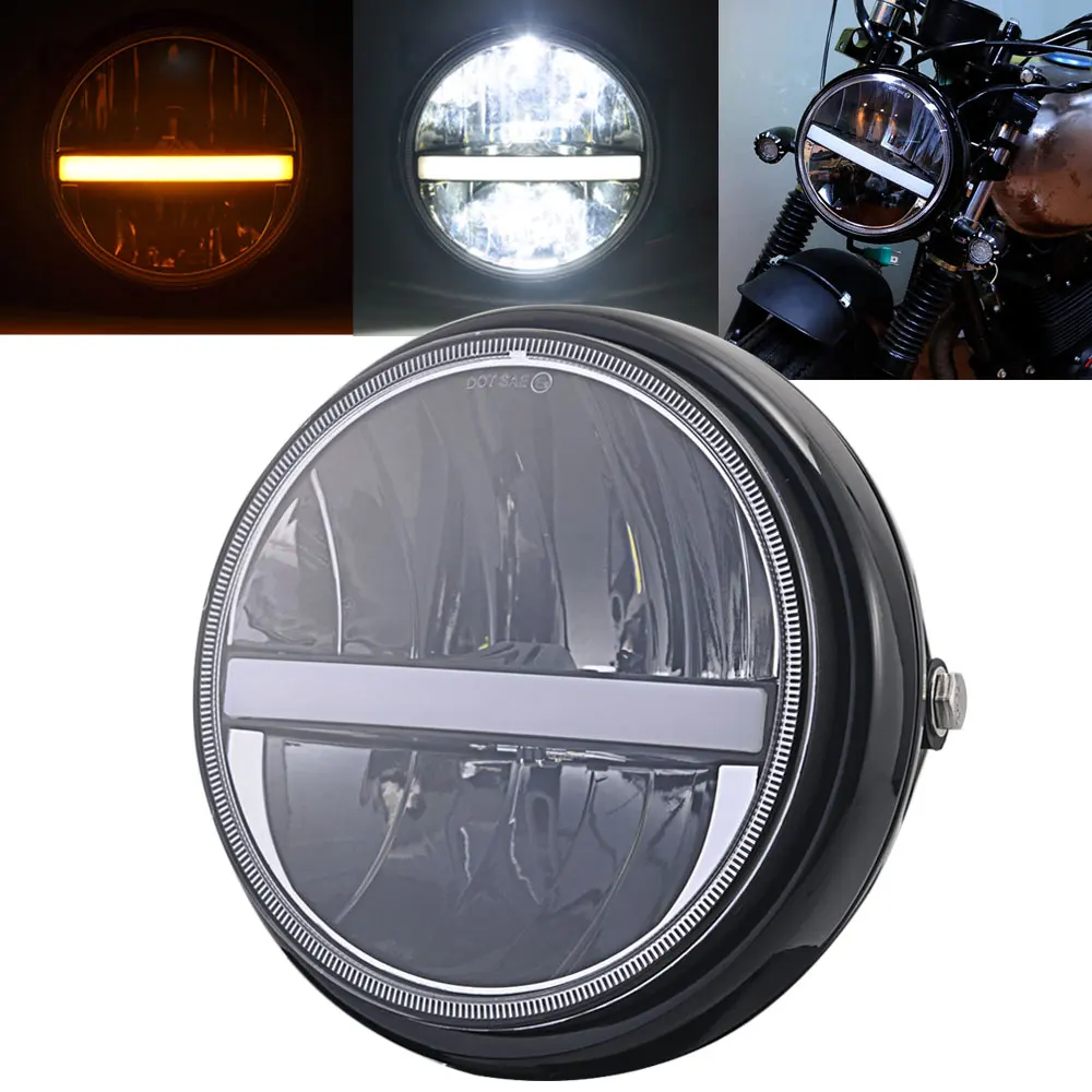.image for Motorbike 7.5" LED Projector Headlight DRL Turn Signal Halo Round Headlamp For Harley Sportster XL